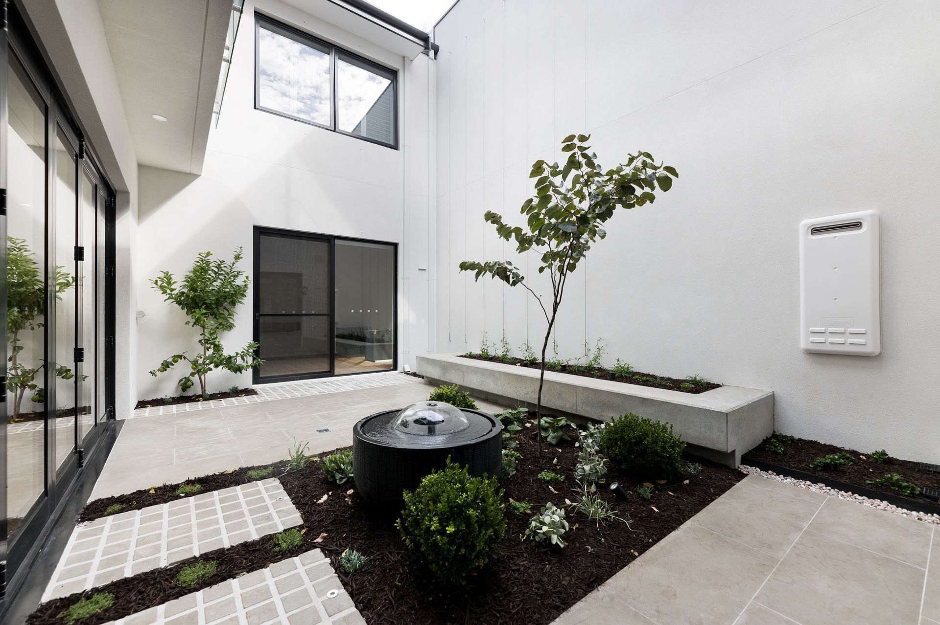 Private Alfresco Space: The kitchen overlooks a second, private courtyard framed by garden beds and fragrant climbing jasmine—the perfect spot for morning coffees or quiet afternoons.