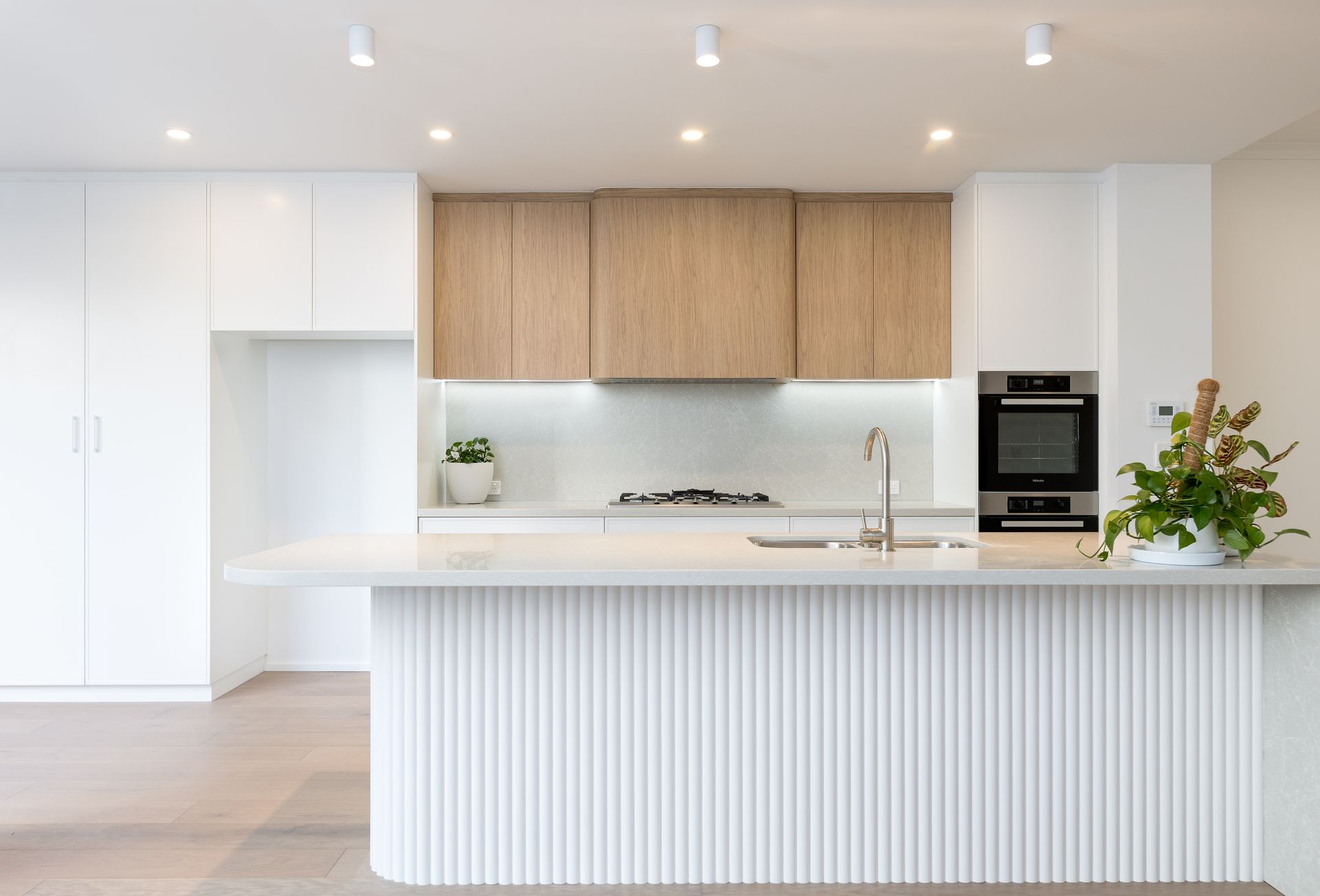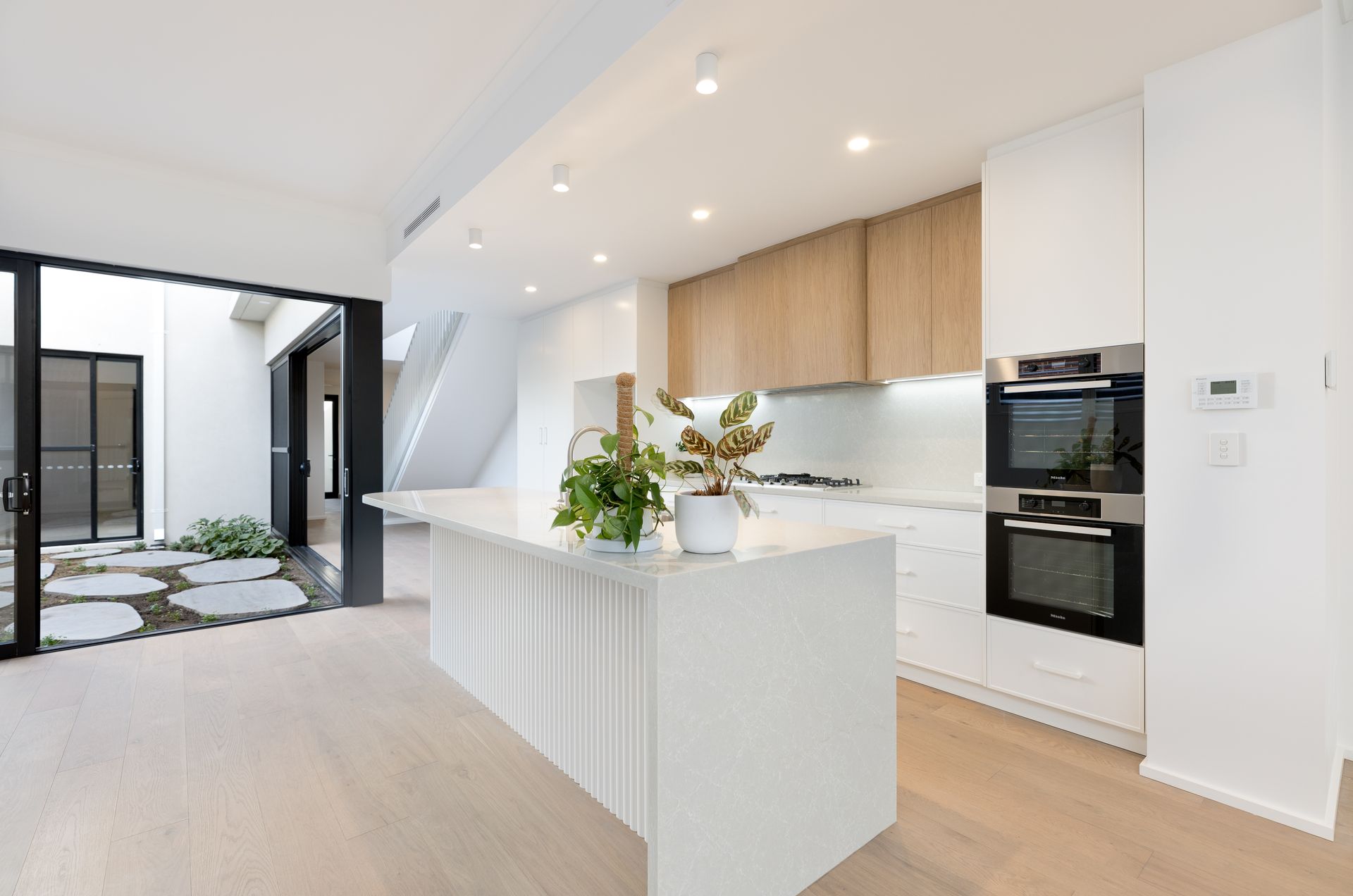• Integrated Miele kitchen package - induction or gas cooktop, rangehood, Combi oven, pyrolytic oven, warming draw, dishwasher.